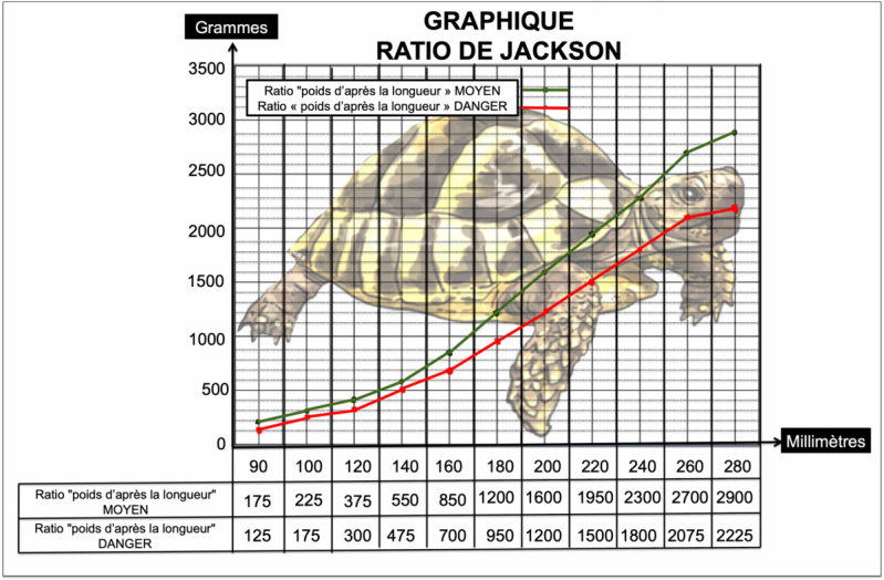 Contrôlez régulièrement cette relation sur vos tortues (au moins une fois par an, en automne). Par ailleurs veillez à toujours prendre les mesures le matin sur une tortue à jeûn (n'ayant rien mangé depuis la veille au soir) et dont la vessie est vide ! Si vous n'êtes pas certain de ces deux conditions reportez de préférence votre mesure au lendemain matin, à moins d'obligation impérative. Le plus important est donc qu'elle n'ait encore rien mangé... Il faut donc agir le plus tôt possible le matin après son réveil. Notez que ces conditions concernant le poids de l'estomac et de la vessie ont une importance toute relative avec de très jeunes tortues de l'année (l'erreur n'est alors que de moins de quatre ou cinq grammes) mais deviennent d'une importance de plus en plus importante au fur et à mesure des années. Quel que soit l'âge, de toutes façon respectez ces conditions pour assurer la meilleure fiabilité de vos mesures.